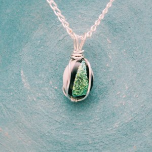 glass fusion jewelry On February 1, 2016February 24, 2016 By Sara fused glass pendant with green dichroic